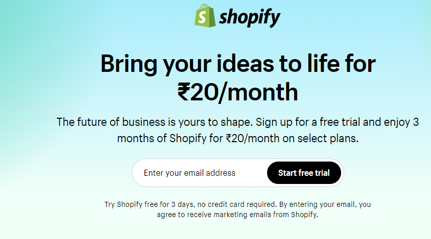 Step1: To create a Shopify account, https://www.Shopify.in/free-trial enter your email address and click on start free trial