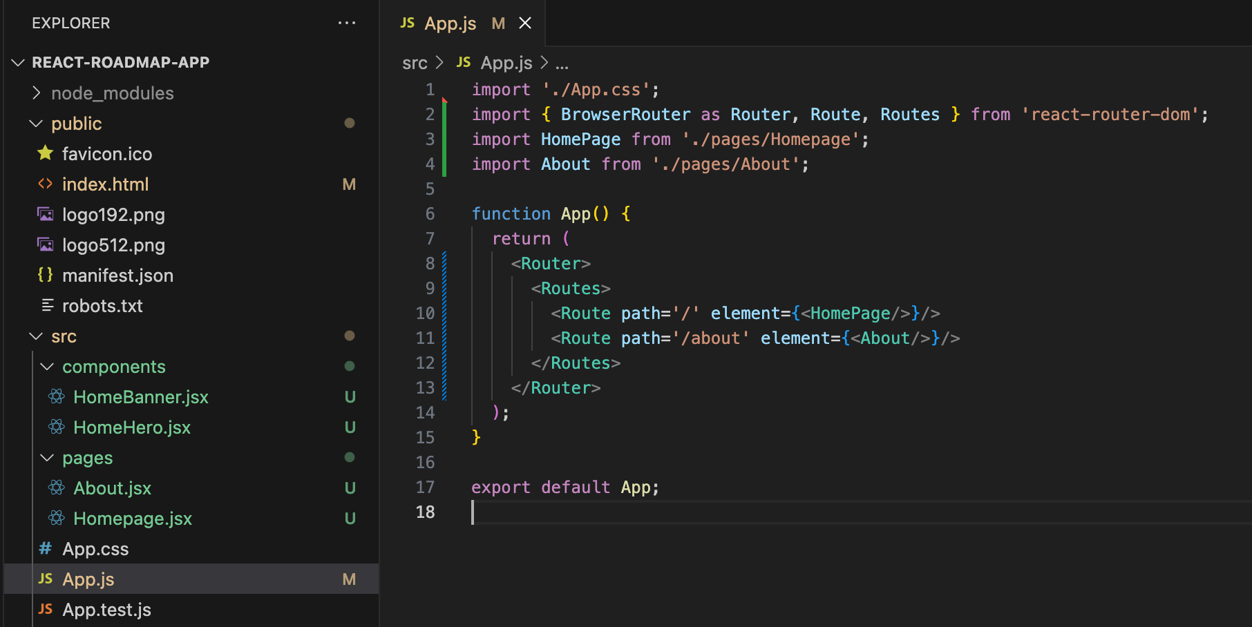 Let us do some changes to our previous code. We are going to create a folder called pages and create two files by names Homepage.jsx and About.jsx.