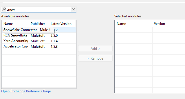 - Integrate the Snowflake Connector into your Mule project from the Anypoint Exchange.