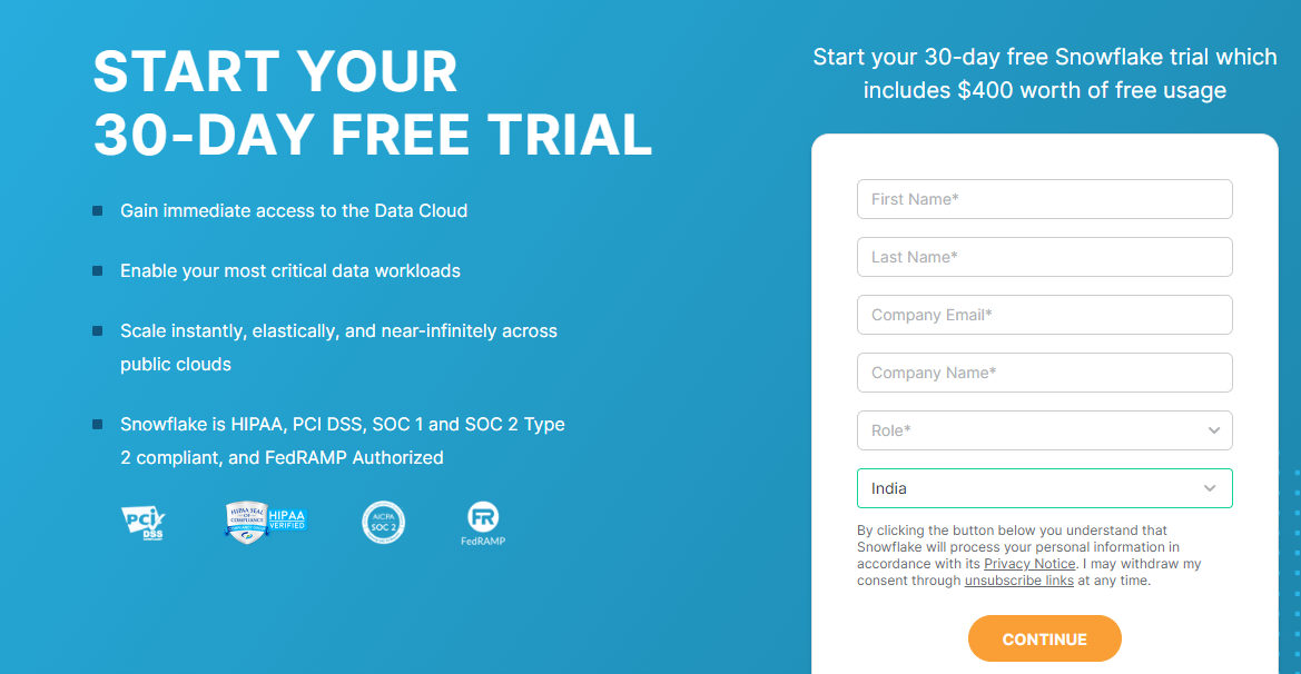 - Register for a Snowflake trial account: https://trial.snowflake.com/