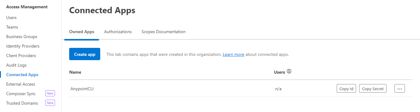 - anypoint-cli-v4 conf client_secret <connected app client_secret>