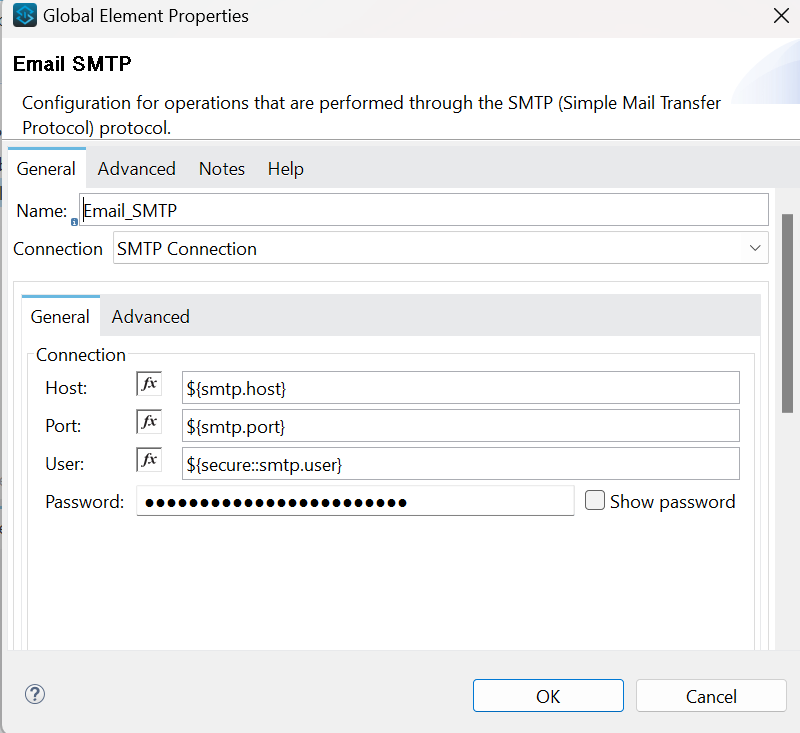 <email:smtp-connection host="${smtp.host}" port="${smtp.port}" user="${secure::smtp.user}" password="${secure::smtp.password}" >
