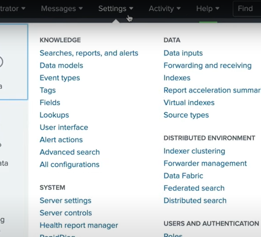 The first step is to set up our receiver or indexer. We login using an admin account on the Splunk Enterprise instance that will be indexing the data.