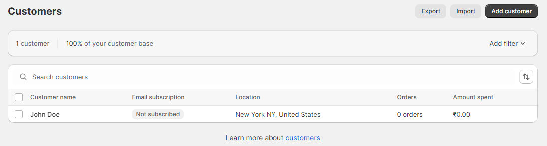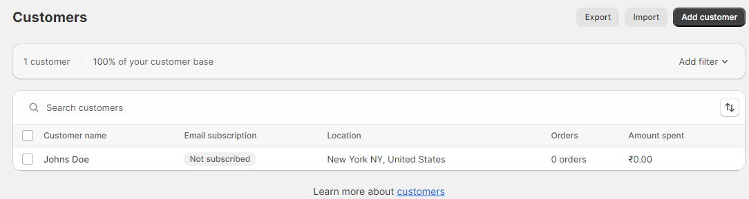 Above mentioned component will provide the count of customers available in our Shopify account.