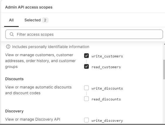 Step5: Click on Configure admin API scopes and add the admin access scope. Then add a webhook version and click on Save.