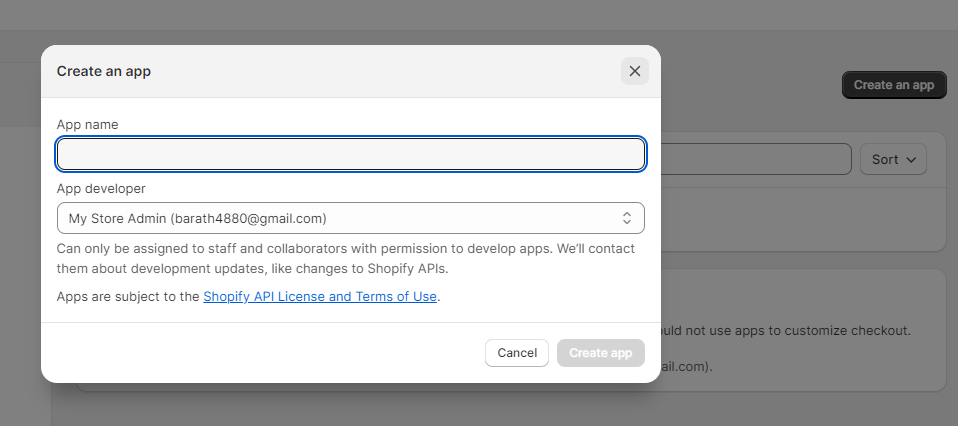 Step2: Enter your email and a password and then click on Create Shopify account.