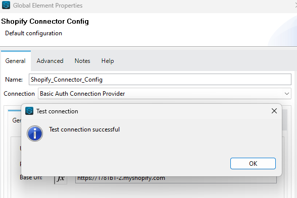 Setting up the Shopify Connector: Following its installation, configure the connector by establishing a global configuration within your MuleSoft project. Access the "Manage Global Elements" section to create a new configuration tailored to the Shopify Connector, inputting your credentials and connection details such as username and password.