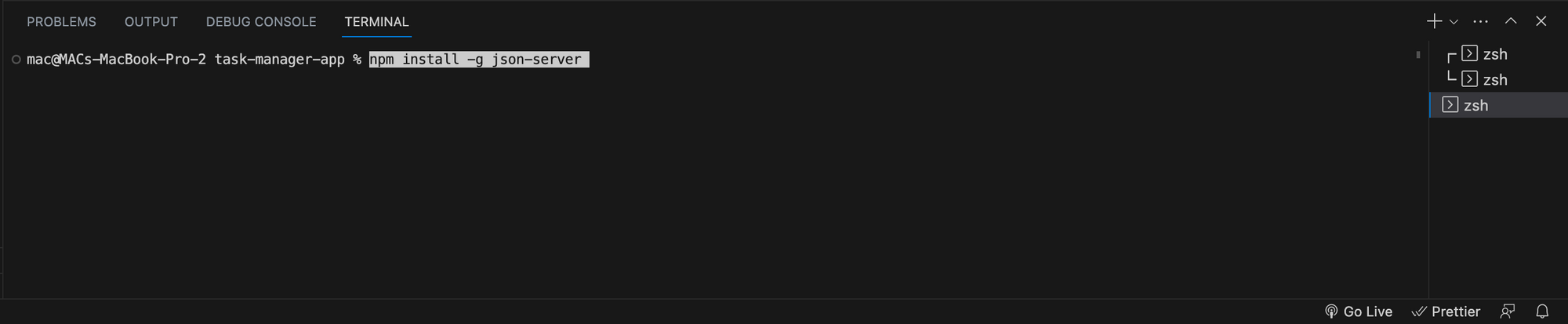 - I’m installing json-server within the app you can also install it globally in your pc.