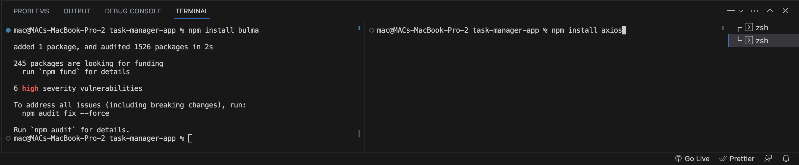 - Axios: Axios is a robust JavaScript library for making HTTP requests. We'll use Axios to communicate with a JSON Server, allowing us to perform Create, Read, Update, and Delete (CRUD) operations on our task data.