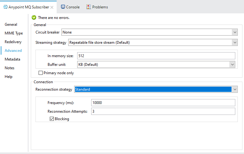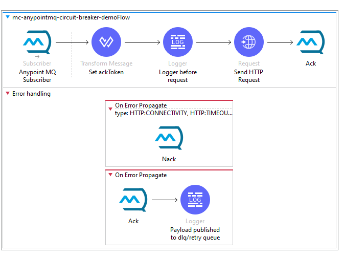 In this example, we'll illustrate a sample integration flow using Anypoint MQ as the source through a subscriber, forwarding data to an external system via an HTTP request. We'll configure a global circuit breaker in the Anypoint MQ subscriber to manage potential failures efficiently.