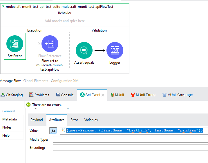 Above we have written a dataweave logic in assert expression component then we take the dataweave logic into .dwl file and we refer to it here (assert expression). Yes, that can be possible. The advantage is, in the future if I wish to change this message (inside expression) then I need not alter the test case, and need not make any change, in the set event as I have supplied two query parameters. In future if I want to change these also, no need to hardcode that one. If we hard code everything in the test case then we need to alter it during every change, rather than supplying this value in .dwl file for better management.