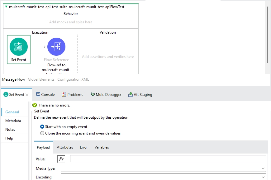 At the beginning of a Munit test, this processor can be used to indicate that the first message is sent to the flow for the purpose of testing. The set-event has the cloneOriginalEvent property. If set true, then it clones the event produced by the code and by default this property is false.
