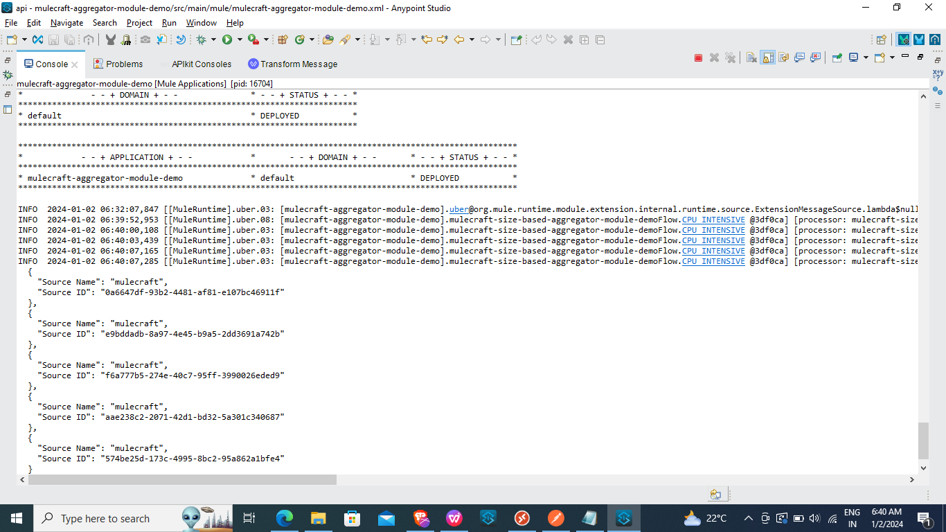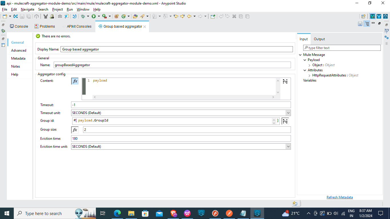 Hope you had good understanding about the aggregator module. If there is any scenario on your project required to aggregate the payload based on the time, size and groupId, you can make use of the aggregator module in Mulesoft.