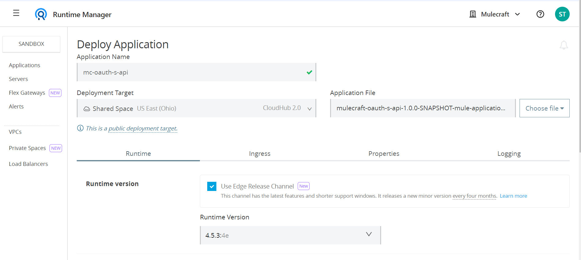 - Deploy your application in runtime manager.