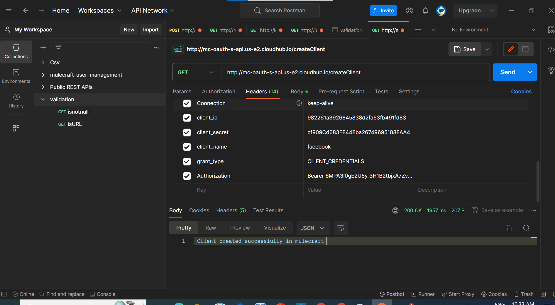 - Client id, client secret, client name are passed from client as headers.