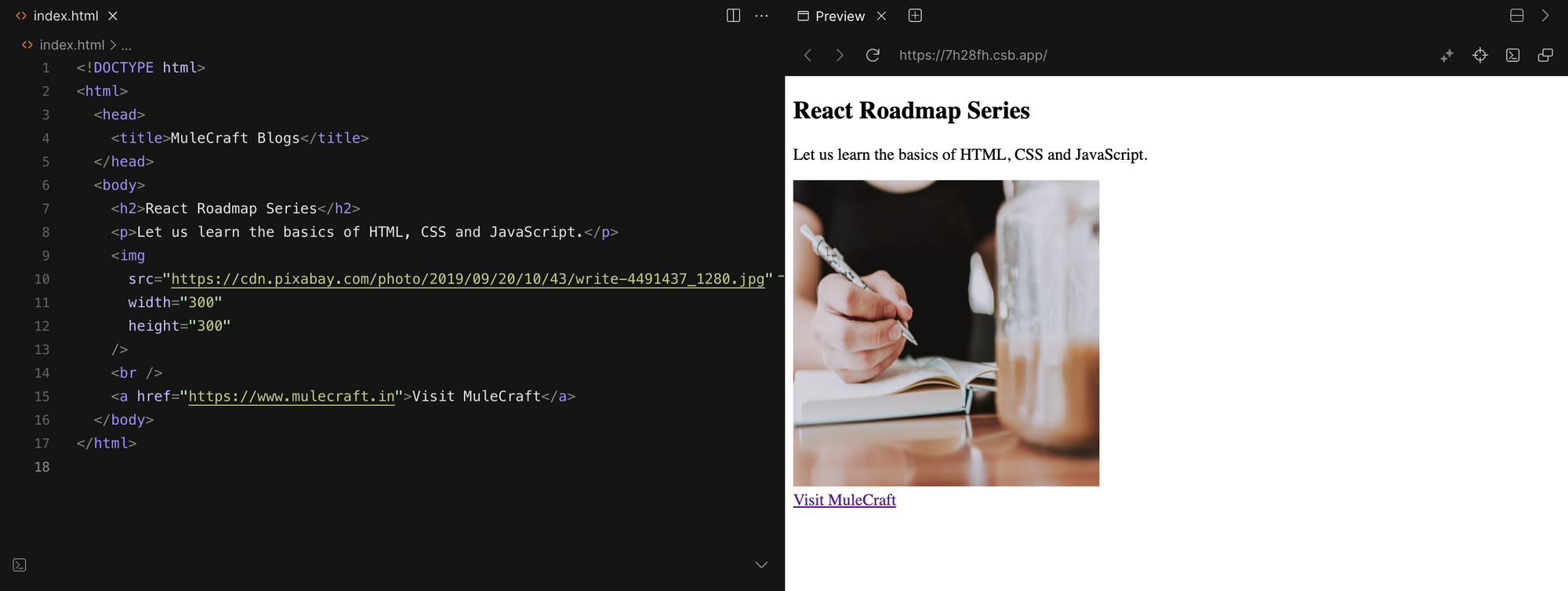 In this example, <p> is the start tag, MuleCraft is your ideal tech companion. is the content and </p> is the end tag.