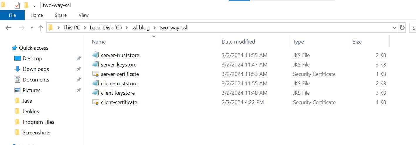 keytool –genkeypair –keyalg RSA –alias my-server-demo –keystore server-keystore.jks -storetype jks –keypass pwd4321 –storepass pwd4321